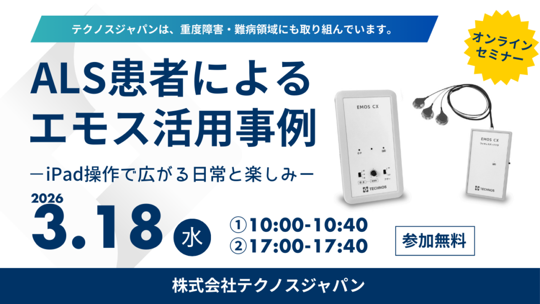 「ALS患者によるエモス活用事例―iPad操作で広がる日常と楽しみ―」をテーマにしたセミナーを開催いたします。