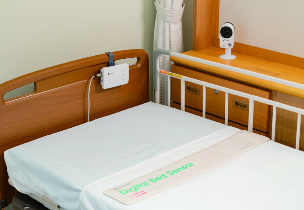 はい。例えば、ご利用者Aさんは、夜に睡眠薬を服用すると日中より不安定になり、夜間にベッドからポータブルトイレへ移動する際に転倒されたことがありました。そこでeライブを設置して夜間の様子を確認することにしました。録画映像を見たところ、移動動作自体には大きな問題はなく、実際に危険だったのはベッド柵に掛けていたブランケットでした。風が入るとの理由で掛けていたものの、Aさんが移動される際、柵を握るときに手が滑りやすくなっていたのです。そのため、ブランケットの代わりにベッド柵カバーを取り付けて、安全に配慮した対策が取れました。