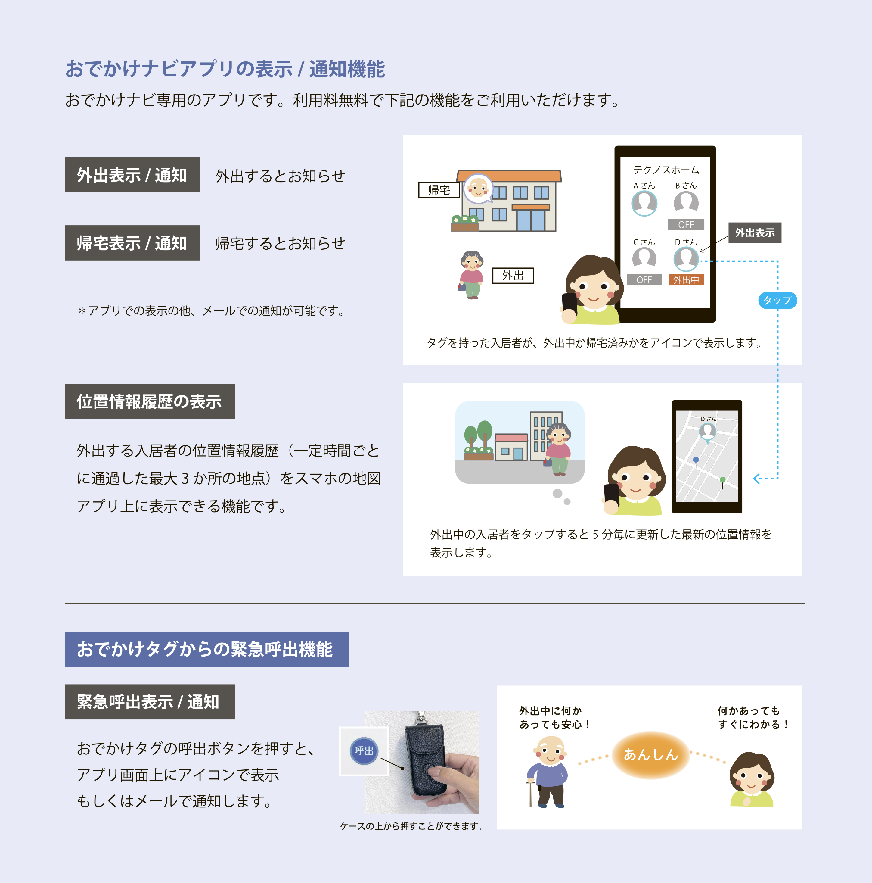 外出中の入居者の位置情報をお知らせします。おでかけナビ
